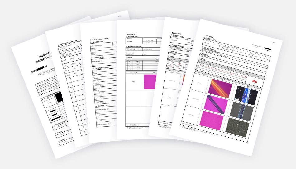 郵送いただいた検体のアスベストの有無などを分析し、分析報告書を発行いたします。